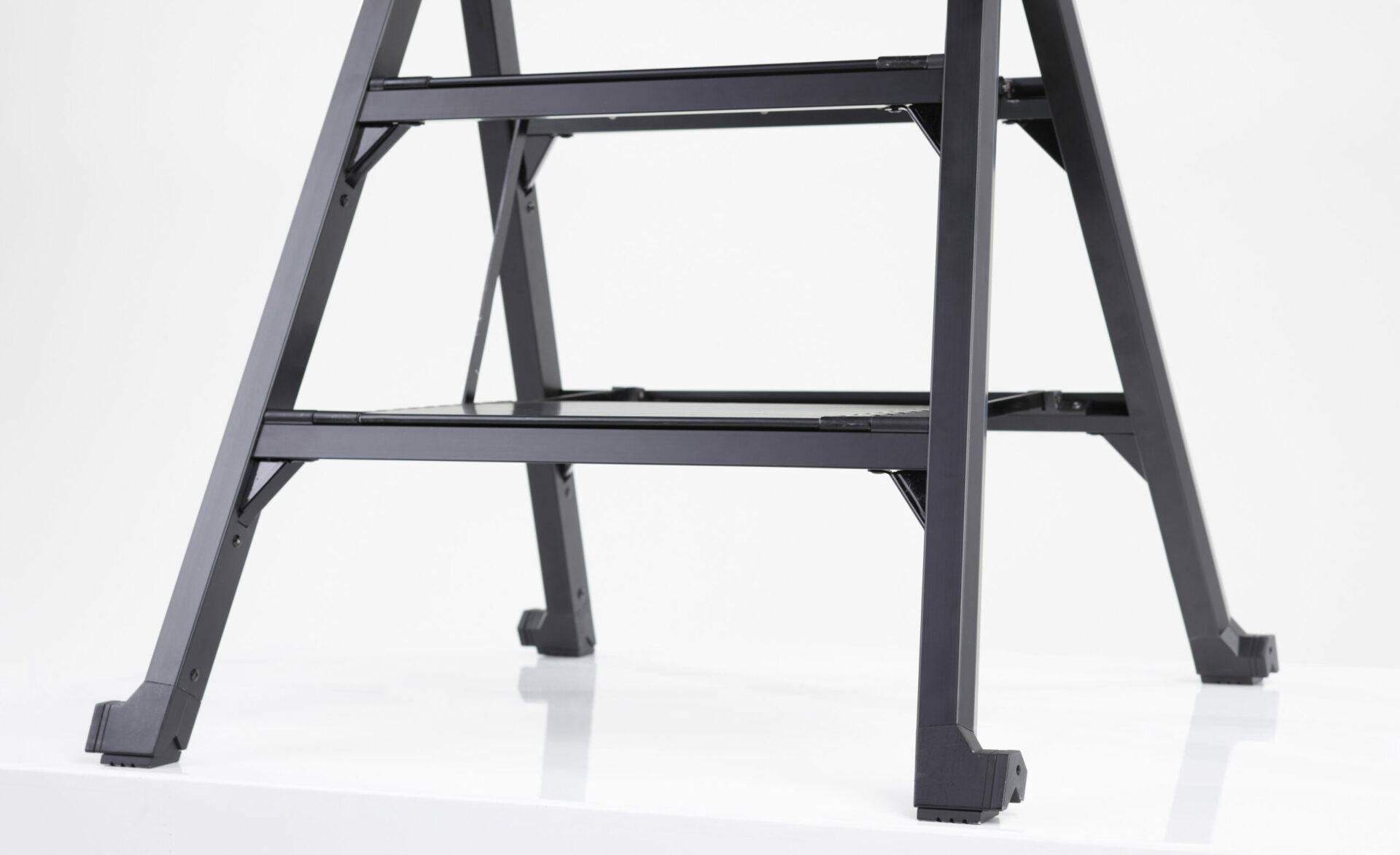 Extra sterke dubbelwandige treden maken de trap sterk en stevig. Door de antislip voeten én treden sta je stabiel en veilig.